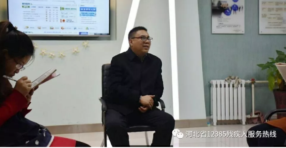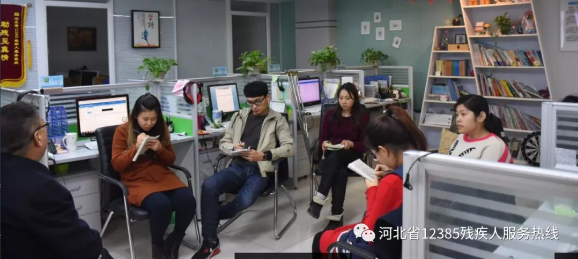 为了更好的为视力残疾人提供服务,提高12385热线工作人员的业务水平,增加知识储备,2018年3月16日下午,石家庄市盲人协会主席石云峰来到12385残疾人服务热线的办公室,给大家上了一堂有关视力残疾人职业技能培训方面的课。