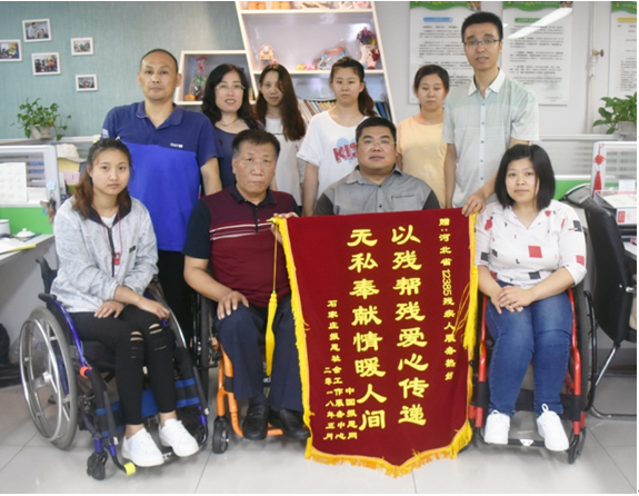 5月16日,中国报恩网、石家庄报恩社会工作服务中心的负责人段非来到河北12385热线的办公地点,送来“无私奉献情满人间,已残帮残爱心传递”的锦旗和感谢信,表达对12385工作团队卓越的工作表达感谢之情,并表示愿意与河北省12385残疾人服务热线长期合作,共同为我省残疾人朋友提供服务。