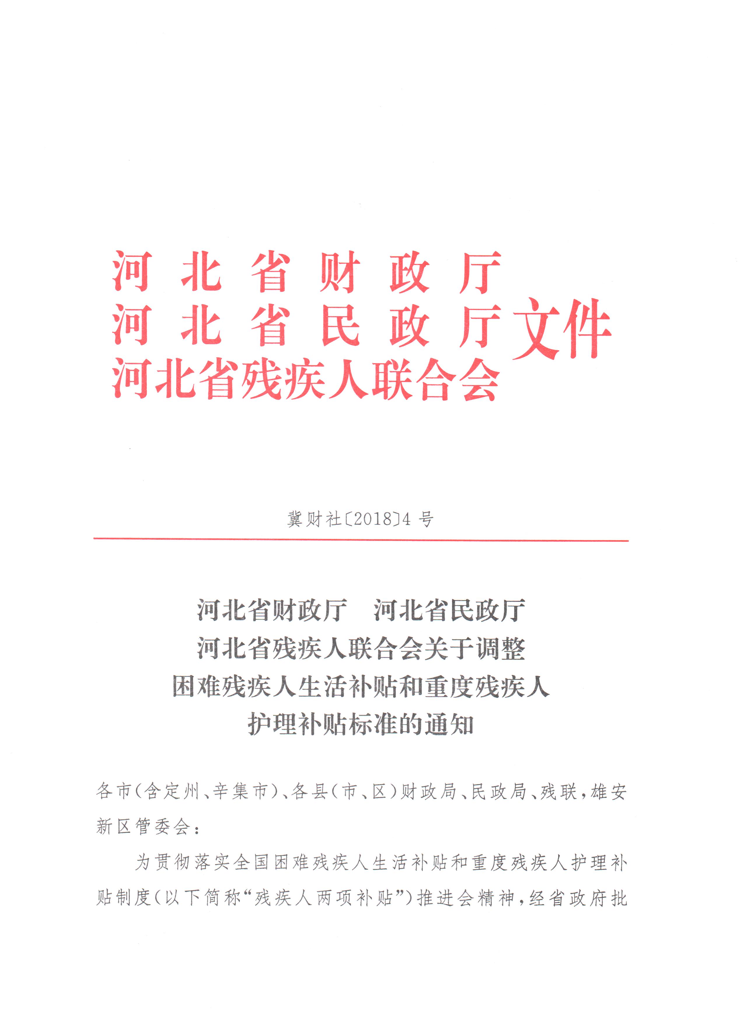 2018年河北省残疾人两项补贴标准上调