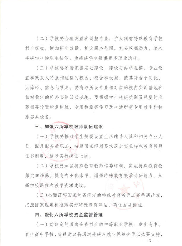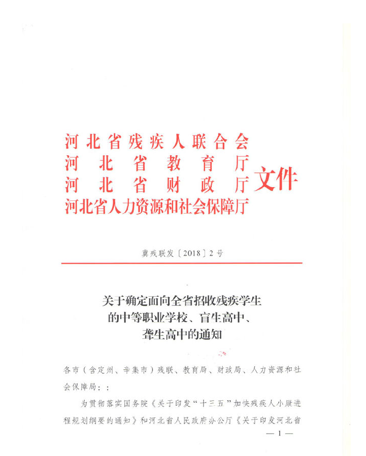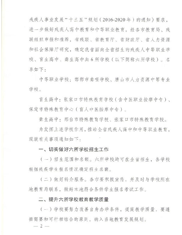 关于确定面向全省招收残疾学生的中等职业学校、盲生高中、聋生高中的通知